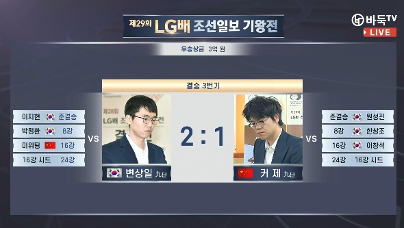 卞相壹以0胜1负的成绩夺得LG杯冠军和3亿韩元奖金。