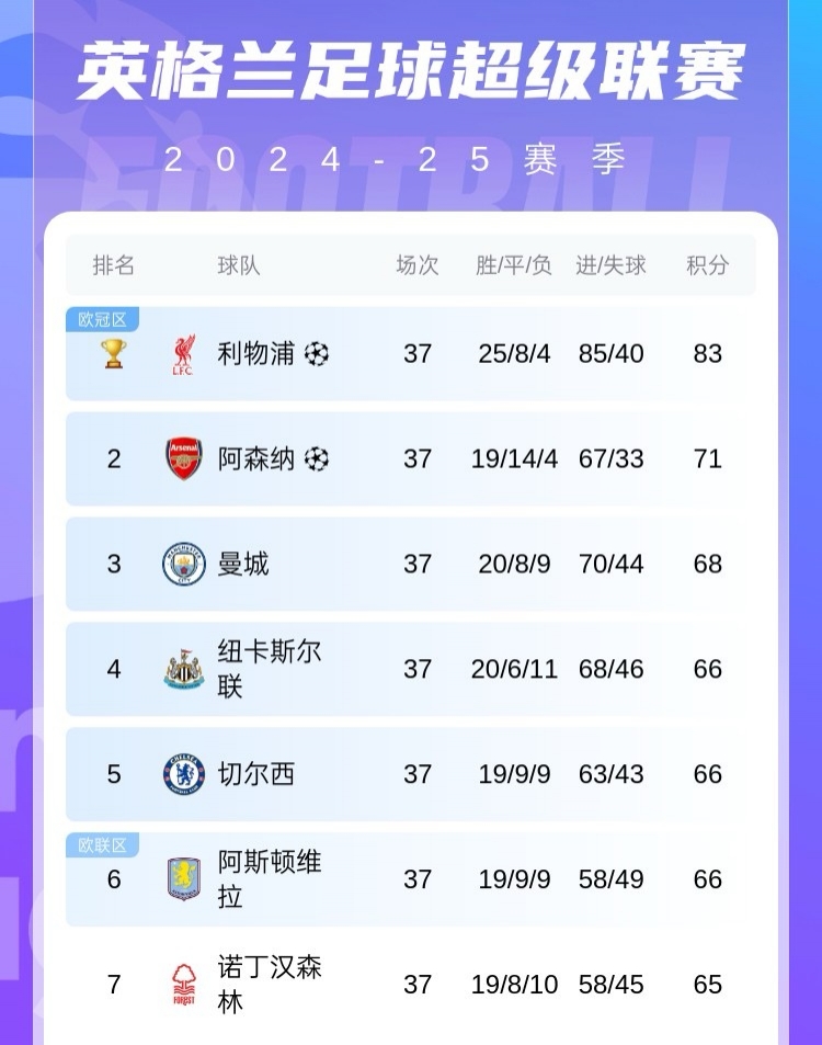 金年会金字招牌信誉至上蓝月目前排名英超第3,积分多4/5/6名2分,优势最大。球队末轮战平即可依靠净胜球(+26)优势锁定欧冠名额,哪怕输球也需要4/5/6名全部赢球才会无缘下赛季欧冠。